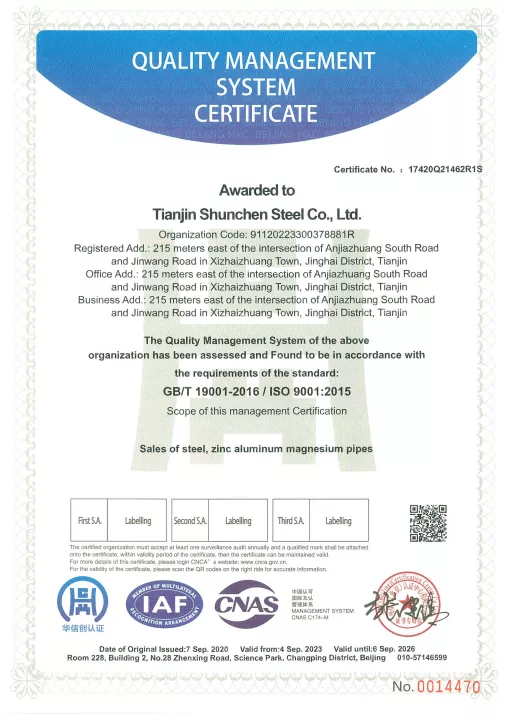 Pipa bunder galvanis kita kasedhiya ing macem-macem spesifikasi, kanthi 236 ukuran sing beda kanggo nyukupi kabutuhan sing beda. Produk kita disertifikasi ISO9001, nyekel sertifikasi sistem ISO 9000, 3A, lan sertifikasi CE EU. Kita uga nyedhiyakake laporan materi, sertifikat pengujian ketebalan lapisan seng, lan laporan pemeriksaan kualitas pihak katelu. Milih pipa bunder galvanis Shunchun ora mung nyedhiyakake layanan purchasing siji mandeg nanging uga dhukungan sawise-sales 24/7 lan pelacakan wektu nyata ing 18 titik penting, nggawe pengadaan sampeyan luwih aman lan dipercaya.