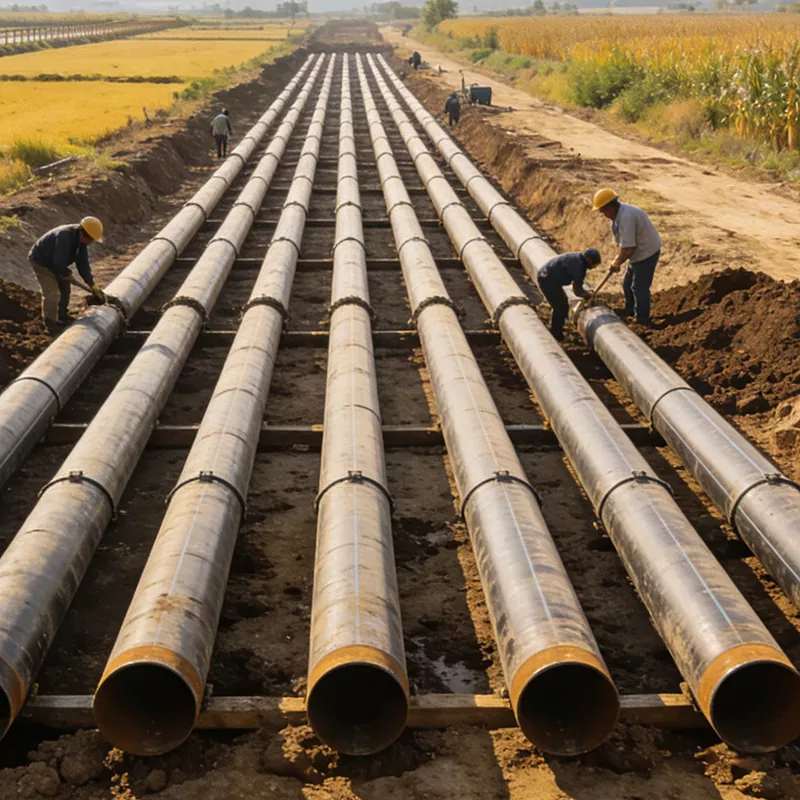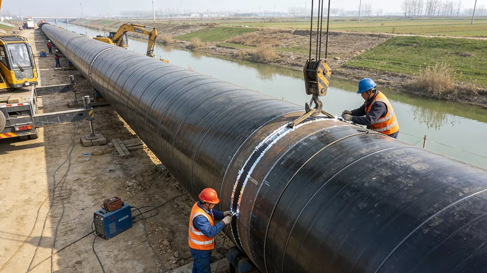 Skenario sing ditrapake: Proyek pengalihan banyu skala gedhe, proyek transfer banyu, proyek kontrol banjir lan drainase, saluran pipa utama kanggo irigasi lahan pertanian, proyek pasokan banyu kanggo banyu ngombe, proyek pasokan banyu pulo, lan liya-liyane. Padha bisa dicocogake kanggo lingkungan Komplek kayata riverbeds, bantala uyah-kena pengaruh, etc. Padha bisa èfèktif nolak erosi banyu lan subsidence geologi, mesthekake transmisi stabil sumber banyu lan njamin operasi aman saka proyèk konservasi banyu. Dheweke duwe peran pendukung penting ing proyek konservasi banyu nasional. Deskripsi Scene: Ing situs konstruksi Proyek Pengalihan Banyu Jinghai, pipa spiral diameter gedhe digunakake kanggo mbikak pipa utama. Pipa kasebut ngliwati kali utawa lahan pertanian, lan para pekerja nindakake perawatan sealing antarmuka. Ing situs proyek pasokan banyu pulo, pipa spiral diameter gedhe kanthi teknologi anti-karat 3PE digunakake kanggo nolak erosi banyu laut lan entuk interkoneksi sumber banyu antarane pulo lan daratan.